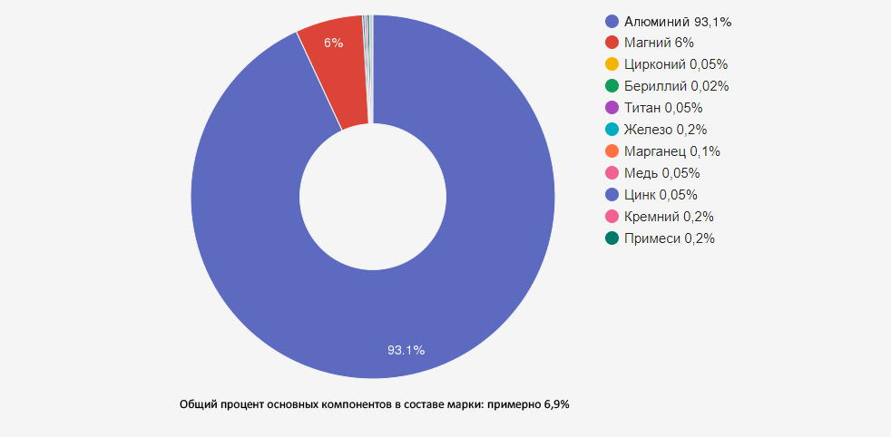 | Магний (Mg) | 6,0-7,0 | Основной легирующий элемент, значительно повышает прочность и коррозионную стойкость, снижает плотность |
